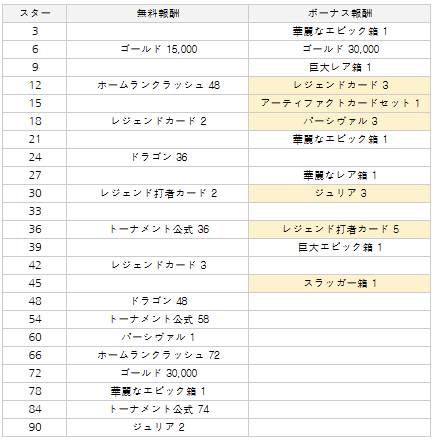 - トーナメント報酬は「スター」の達成時に獲得可能で、無料報酬とジェムで解放可能な「ボーナス報酬」に分けられます。