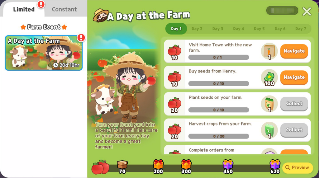 ※ 農場的一天活動任務,將在更新後首次登入起算 21 天內進行。