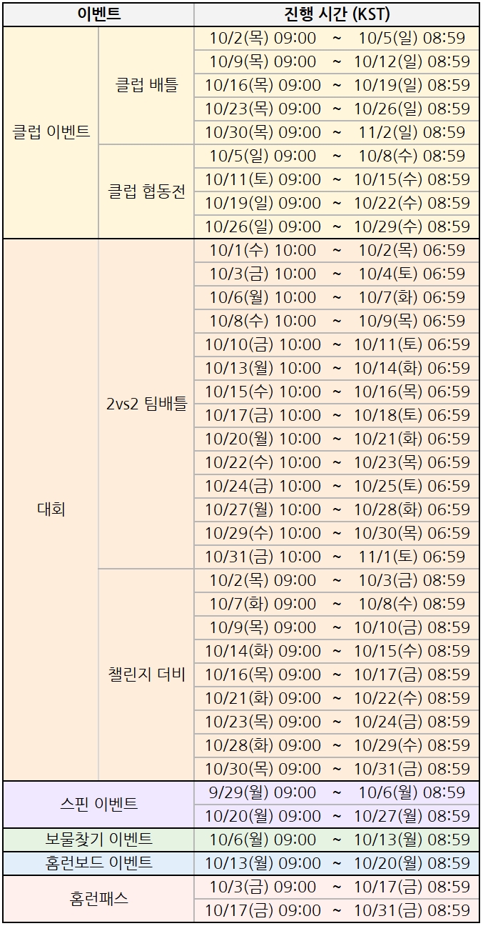 ※ 2vs2 팀배틀 시작 시간: 10:00, 14:00, 18:00, 22:00, 익일 02:00, 06:00 (1시간 진행)