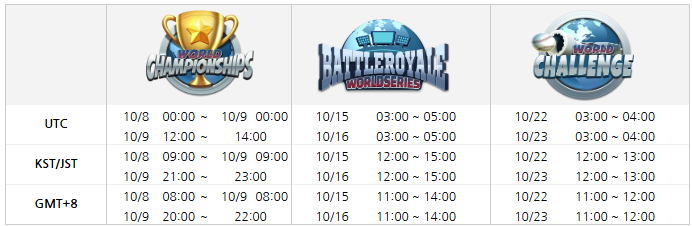 世界巡迴賽將包含「世界錦標賽」、「世界大逃殺」、「世界挑戰」,並配合開賽國家的尖峰時刻開賽。