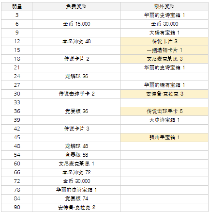 - 淘汰赛奖励在达成“明星”时可获得,分为免费奖励和可用宝石解锁的“额外奖励”。