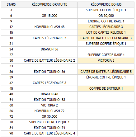 - Les récompenses du Tournoi s'obtiennent en atteignant des « étoiles » et se présentent sous forme de récompenses gratuites et de « récompenses bonus qui se débloquent avec des gemmes.