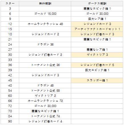 - トーナメント報酬は「スター」の達成時に獲得可能で、無料報酬とジェムで解放可能な「ボーナス報酬」に分けられます。