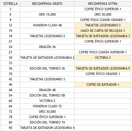 Las recompensas del Torneo se obtienen al alcanzar «Estrellas» y estas se dividen en recompensas gratis y «recompensas extra» que se pueden desbloquear con gemas.