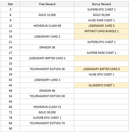 - Rewards may be acquired by earning "stars", and are categorized into Free Rewards and "Bonus Rewards" that may be unlocked using Gems.