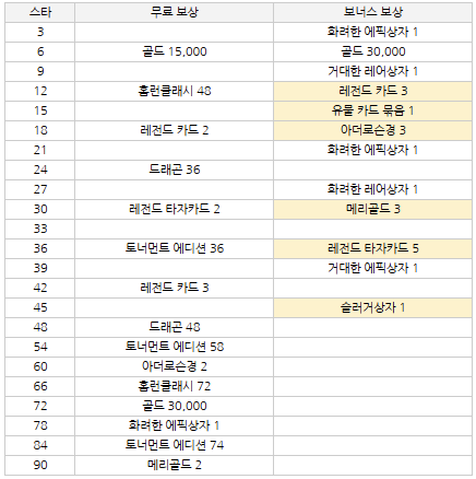- 토너먼트 보상은 '스타' 달성 시 획득 가능하며, 무료 보상과 보석으로 해금 가능한 '보너스 보상'으로 나눠집니다.