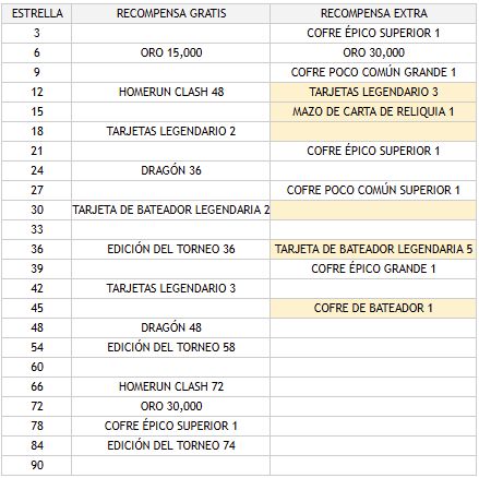 Las recompensas del Torneo se obtienen al alcanzar «Estrellas» y estas se dividen en recompensas gratis y «recompensas extra» que se pueden desbloquear con gemas.