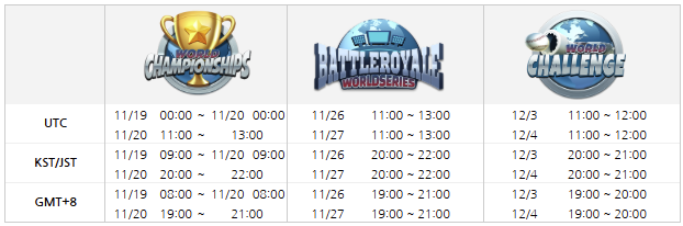 世界巡迴賽將包含「世界錦標賽」、「世界大逃殺」、「世界挑戰」,並配合開賽國家的尖峰時刻開賽。