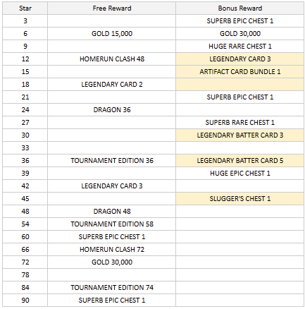 - Rewards may be acquired by earning "stars", and are categorized into Free Rewards and "Bonus Rewards" that may be unlocked using Gems.