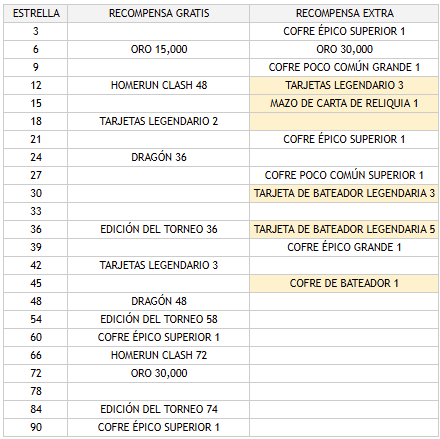 Las recompensas del Torneo se obtienen al alcanzar «Estrellas» y estas se dividen en recompensas gratis y «recompensas extra» que se pueden desbloquear con gemas.