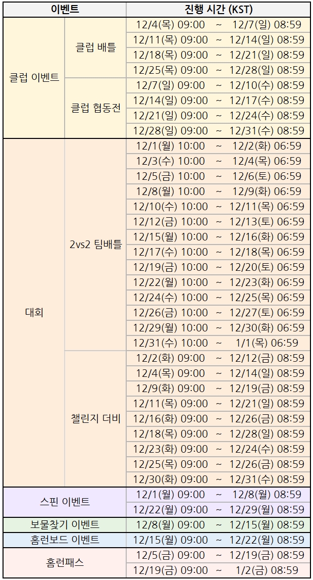 12월의 인게임 이벤트 일정을 안내해 드려요! 🎮