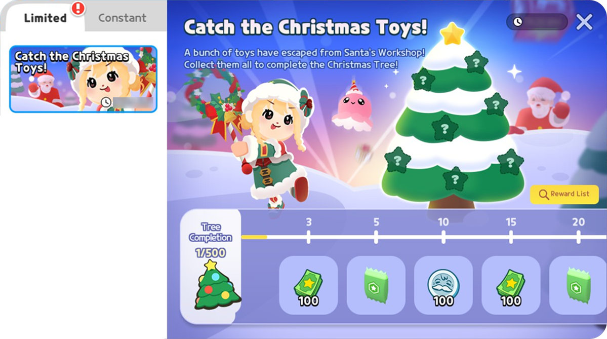 イベントミッション達成および、逃げたおもちゃを捕まえて集めた「メリーコイン」を使って、