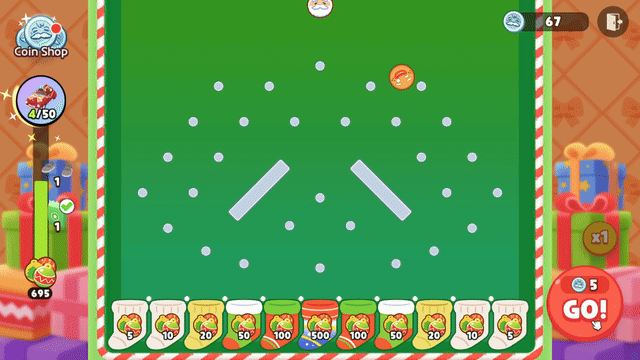 ミニゲームマシン操作時、メリーコインが障害物を通過しながら落下し、