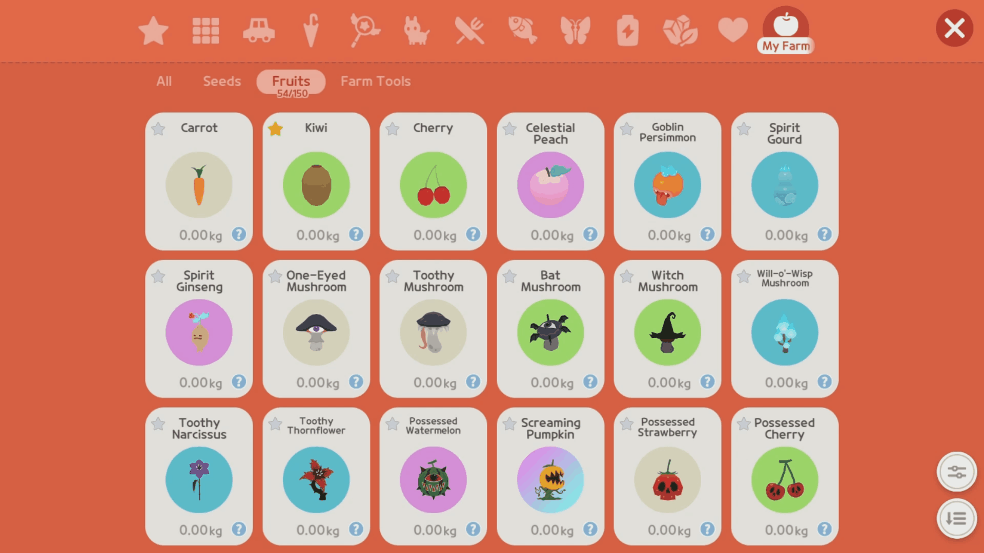 バッグ/倉庫で所持している果実を簡単に探せる、