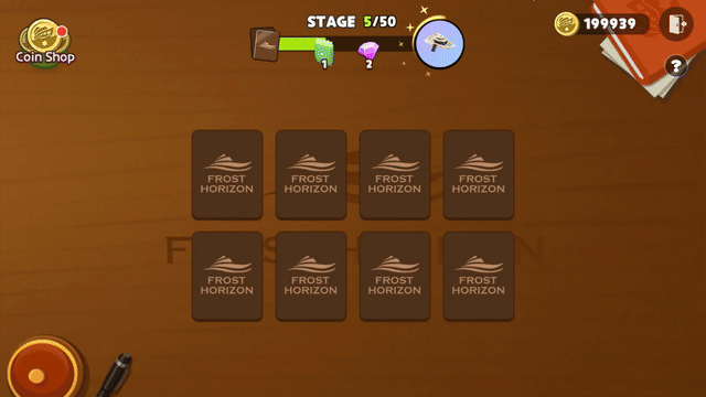 - カードを2枚めくって同じ絵柄ならカードが消え、違う場合は元に戻ります。