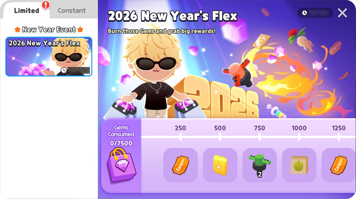 ※ 2026 新年記念フレックスイベントは **2026年1月1日 09:00(日本時間)**より開始されます。