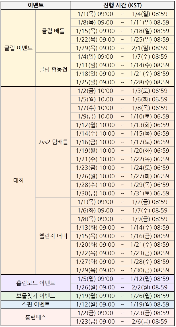 1월의 인게임 이벤트 일정을 안내해 드려요! 🎮