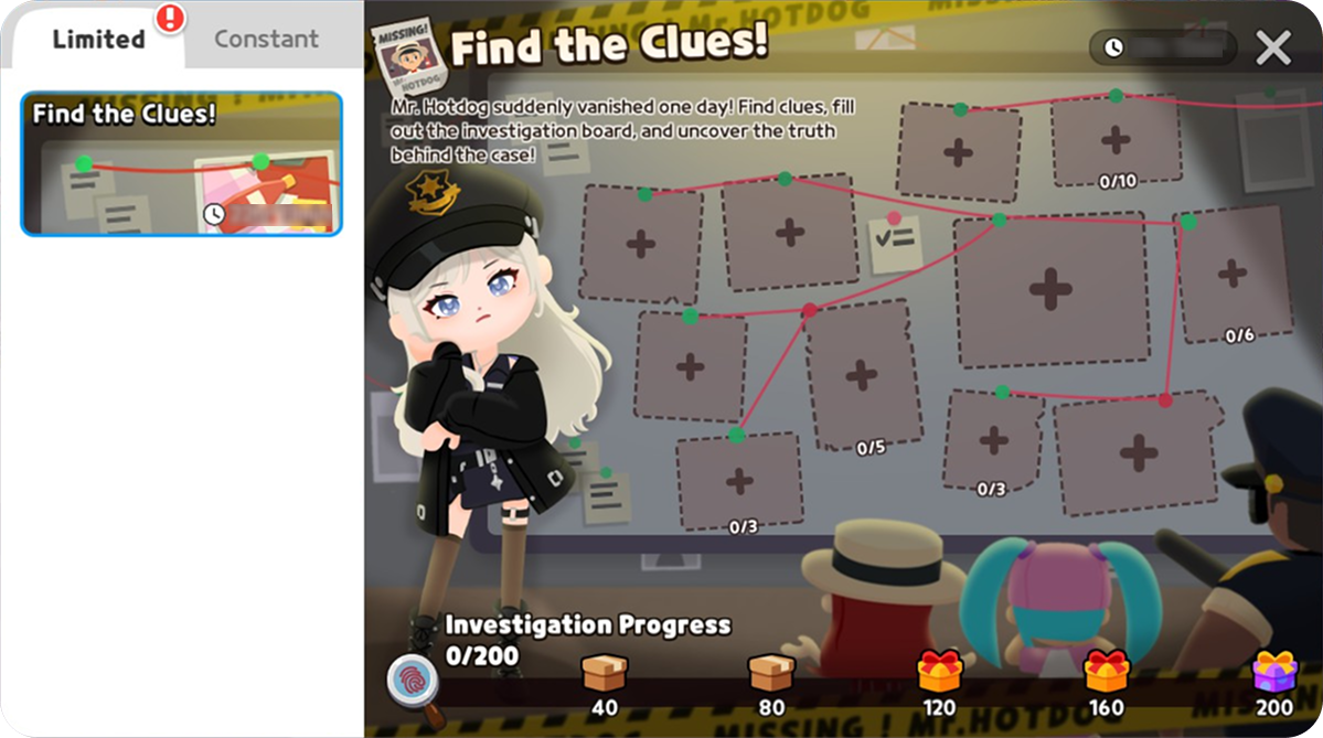 捜査の進行度に応じて「怪しいB.I.N.G.Oコイン」「特殊警察 ミニミー コスチュームセット」を獲得できます。