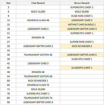 - Rewards may be acquired by earning "stars", and are categorized into Free Rewards and "Bonus Rewards" that may be unlocked using Gems.