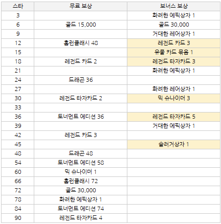 - 토너먼트 보상은 '스타' 달성 시 획득 가능하며, 무료 보상과 보석으로 해금 가능한 '보너스 보상'으로 나눠집니다.