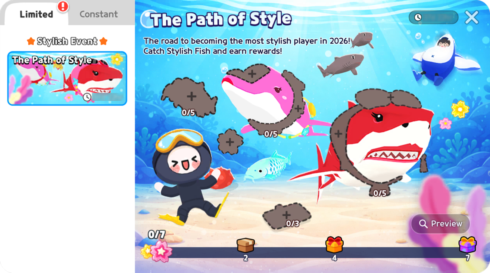 すべてのおしゃれな魚を釣り上げると、おしゃれ水槽 3種、おしゃれ名札、さらにさまざまなカードパック報酬を獲得できます。