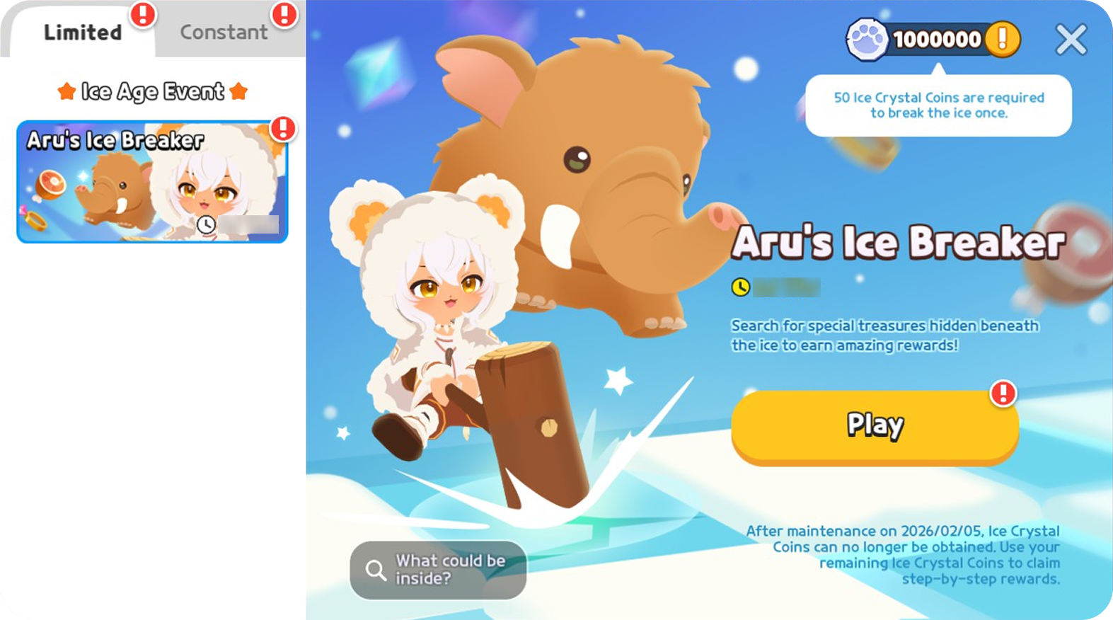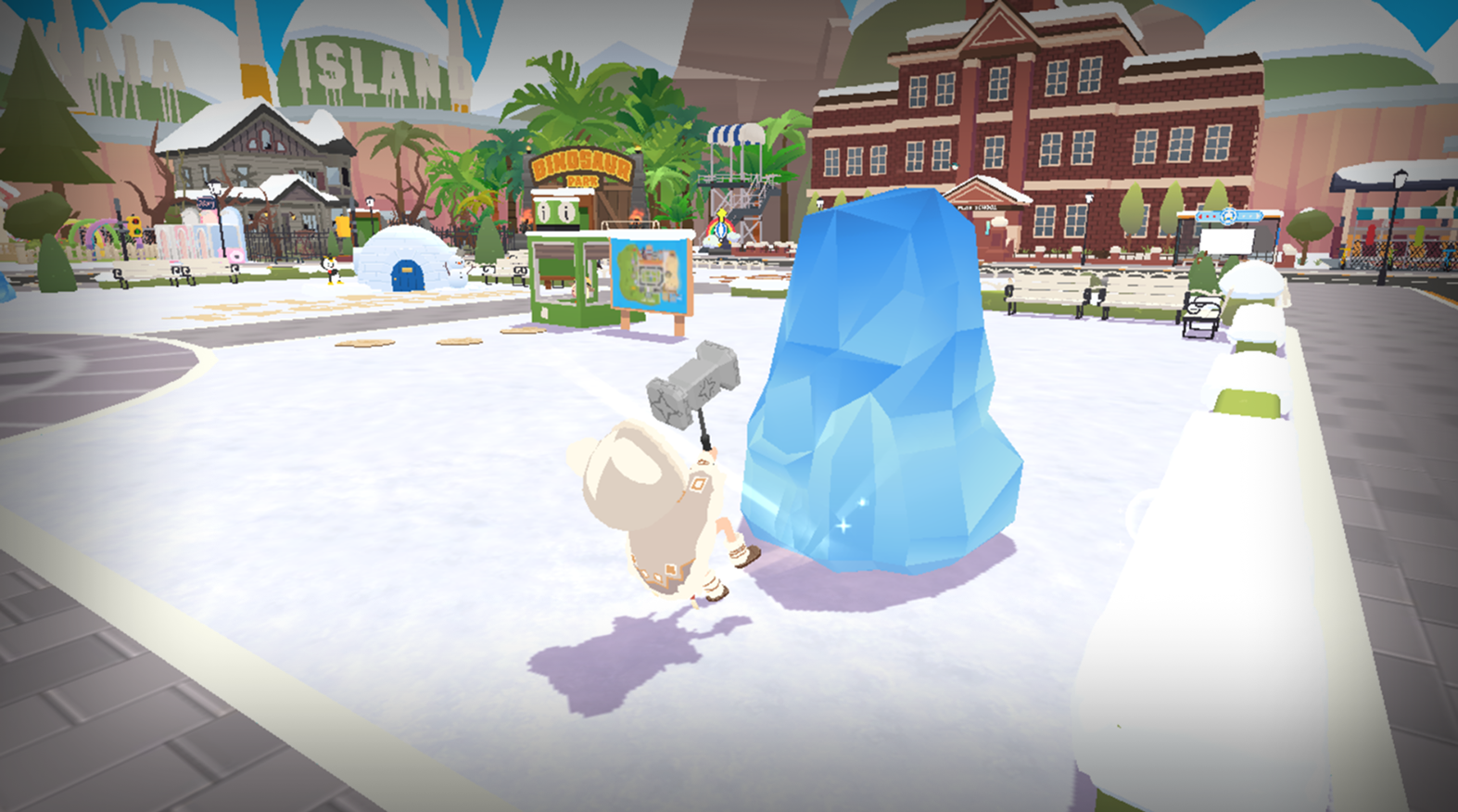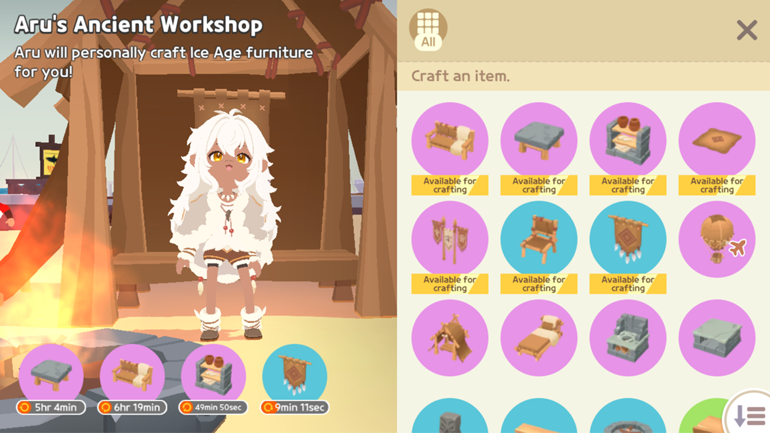 また、獲得した氷のかけらコインは、ミニゲーム**「アルの氷割り」で使用したり、広場のビーチにあるアルの古代工房**で氷河期家具の製作に使用できます。