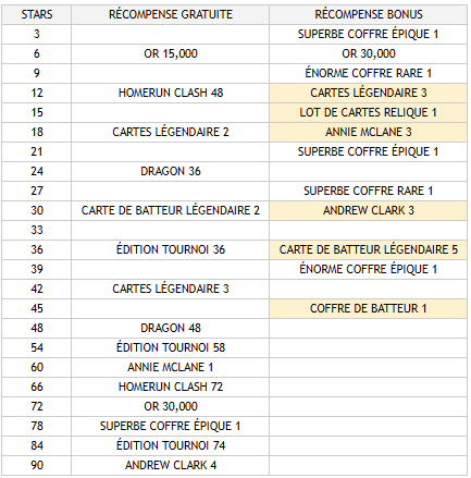 - Les récompenses du Tournoi s'obtiennent en atteignant des « étoiles » et se présentent sous forme de récompenses gratuites et de « récompenses bonus qui se débloquent avec des gemmes.