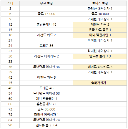 - 토너먼트 보상은 '스타' 달성 시 획득 가능하며, 무료 보상과 보석으로 해금 가능한 '보너스 보상'으로 나눠집니다.