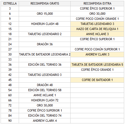 Las recompensas del Torneo se obtienen al alcanzar «Estrellas» y estas se dividen en recompensas gratis y «recompensas extra» que se pueden desbloquear con gemas.