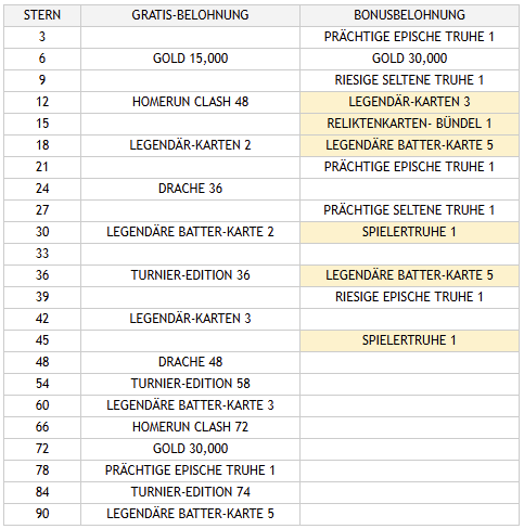 – Turnier-Teilnahmebelohnungen können erhalten werden, wenn „Sterne“ erreicht werden. Es gibt Gratis-Belohnungen und „Bonusbelohnungen“, die mit Juwelen freigeschaltet werden müssen.